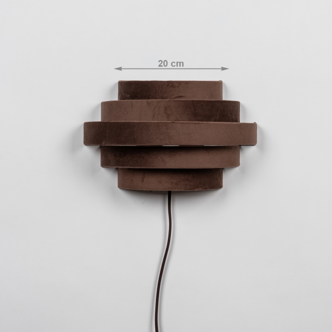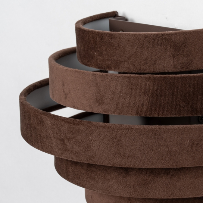 Halfronde wandlamp in zachte, velvet stof uitgevoerd in een chocolade bruine kleur