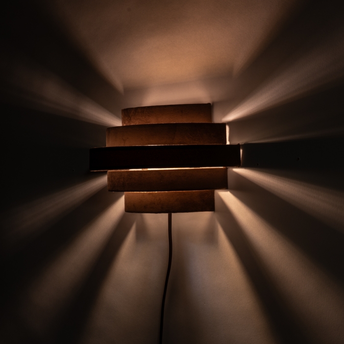Breng zachtheid en elegantie in uw interieur met deze prachtige wandlamp, uitgevoerd in luxe velvet stof. Het zachte materiaal geeft de lamp een warme uitstraling, perfect om uw woonkamer, slaapkamer of hal te verfraaien. De lamp heeft een uniek design met halve ringen in verschillende formaten, waarbij subtiele ruimtes tussen de ringen zorgen voor een mooi spel van licht op de wand. De binnenzijde is wit zodat het licht optimaal gereflecteerd wordt. Het resultaat? Een sfeervolle, zachte verlichting die perfect is voor elke kamer.Voordelen wandlamp van velvet stof