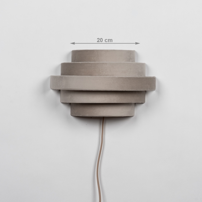 Halfronde wandlamp in zachte, velvet stof uitgevoerd in een taupe kleur