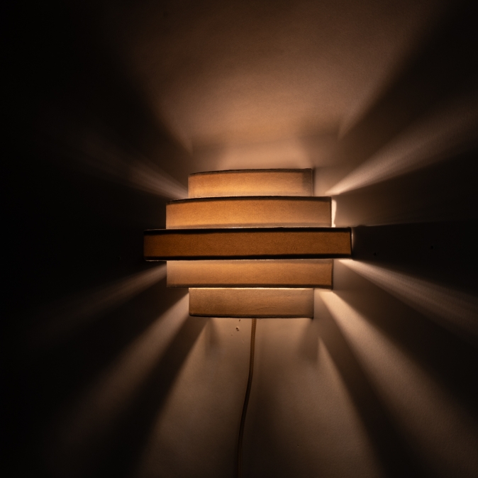 Breng zachtheid en elegantie in uw interieur met deze prachtige wandlamp, uitgevoerd in luxe velvet stof. Het zachte materiaal geeft de lamp een warme uitstraling, perfect om uw woonkamer, slaapkamer of hal te verfraaien. De lamp heeft een uniek design met halve ringen in verschillende formaten, waarbij subtiele ruimtes tussen de ringen zorgen voor een mooi spel van licht op de wand. De binnenzijde is wit zodat het licht optimaal gereflecteerd wordt. Het resultaat? Een sfeervolle, zachte verlichting die perfect is voor elke kamer.Voordelen wandlamp van velvet stof