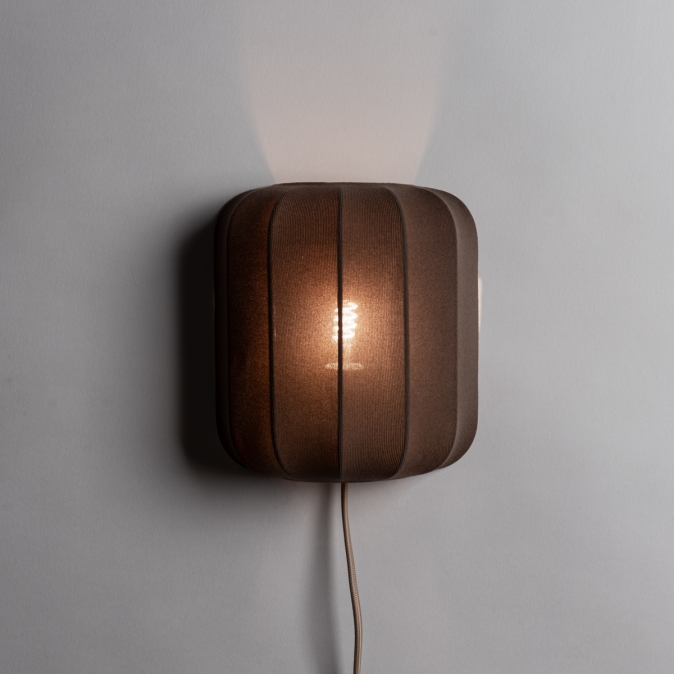 Luxe wandlamp van stof in een bruine kleur!