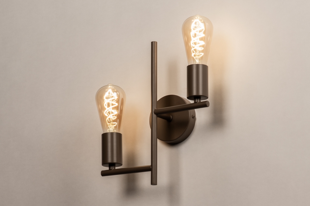 • wandlamp 75596 design modern retro metaal bruin rond langwerpig